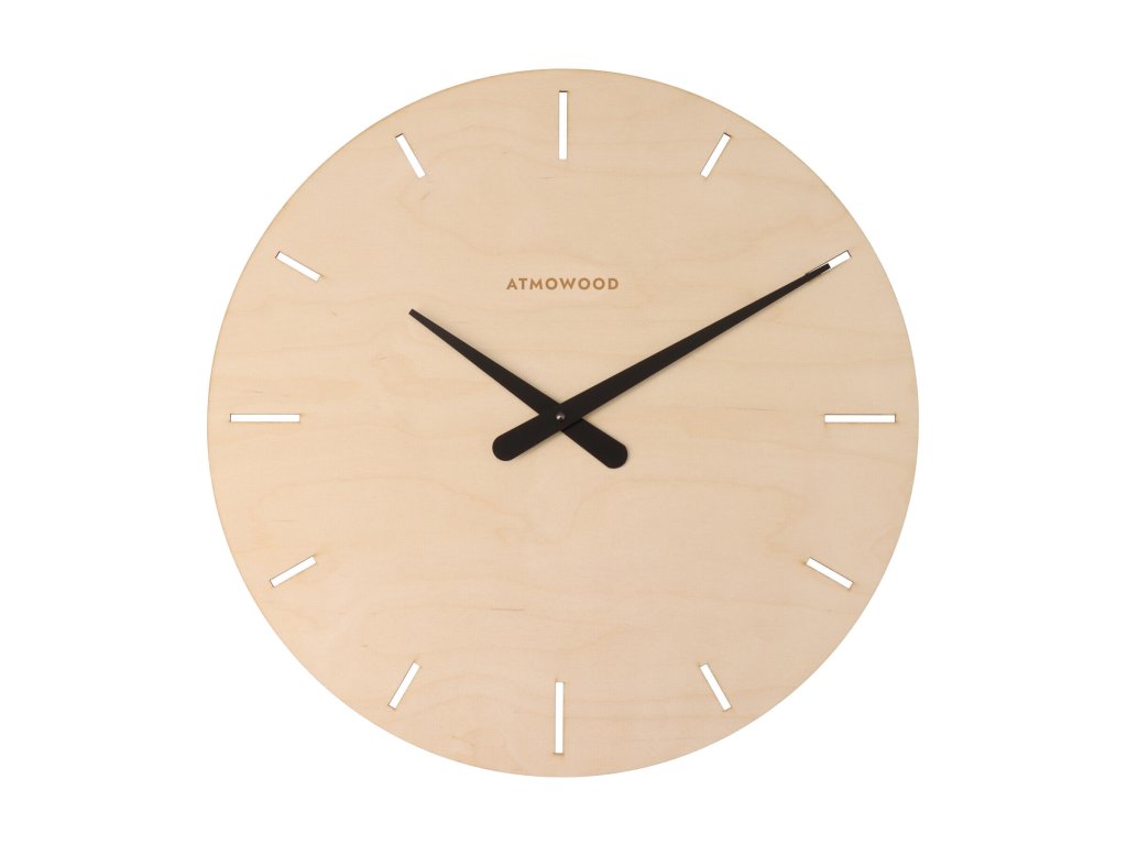 ATMOWOOD berkenhouten klok zonder cijfers 50 cm – zwarte wijzers