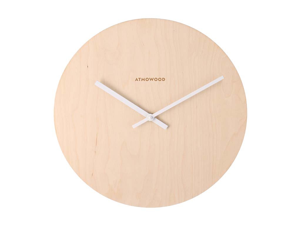 ATMOWOOD berkenhouten klok 34 cm – witte wijzers