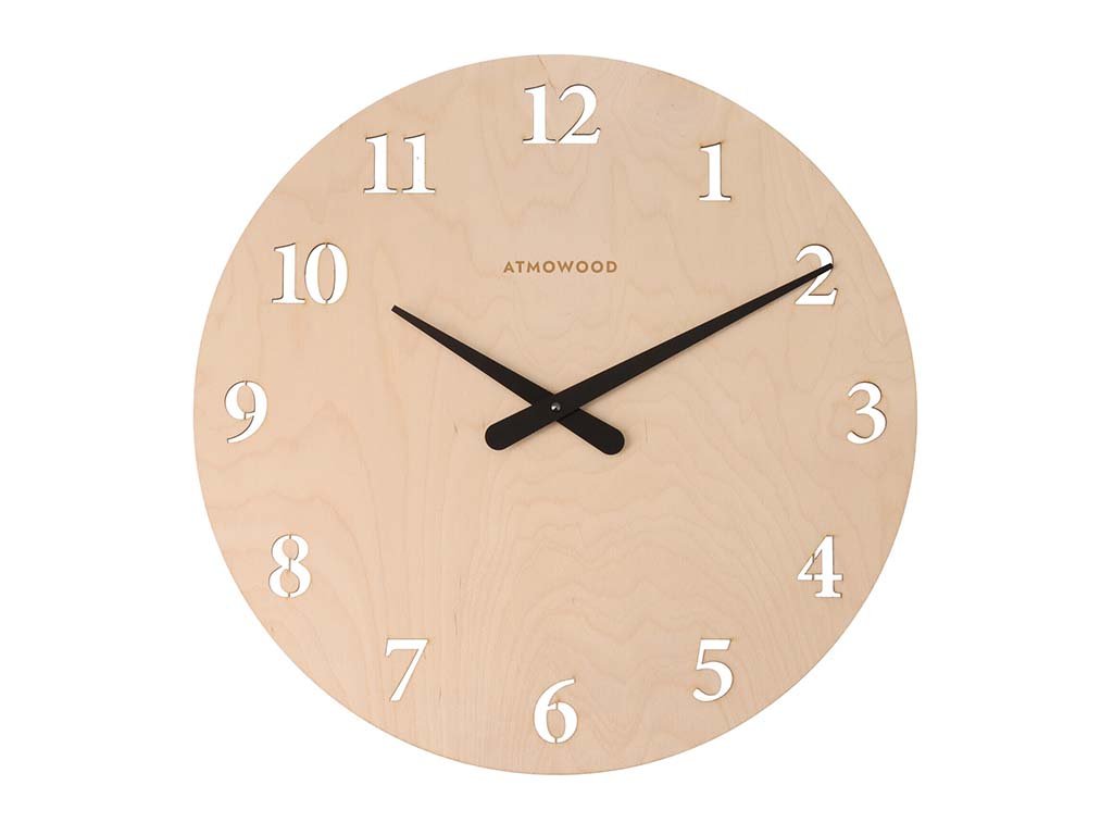 ATMOWOOD berkenhouten klok met cijfers 50 cm – zwarte wijzers