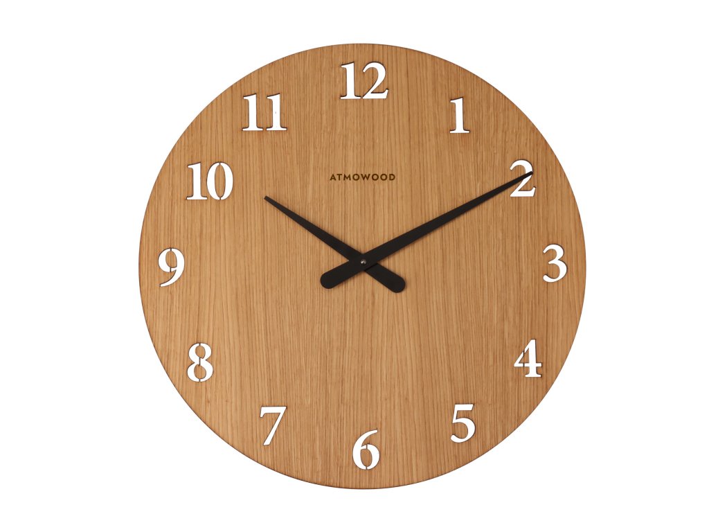 ATMOWOOD eikenhouten klok met cijfers 50 cm – zwarte wijzers