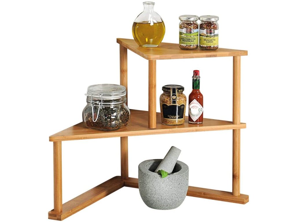 Lichte constructie van bamboehout en natuurlijk materiaal zijn de voordelen van dit populaire woonproduct. Op de planken kunt u kruiden of smaakmakers opslaan en zo ruimte op het aanrecht besparen.