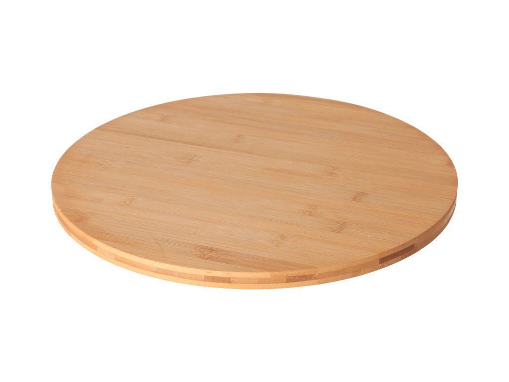 Draaiend serveerplankje van bamboehout. De ronde uitvoering is ideaal voor het serveren van verschillende voedingsmiddelen. Het heeft een draaibaar lagering waardoor het plateau kan draaien. Een praktisch en nuttig product voor elke keuken.