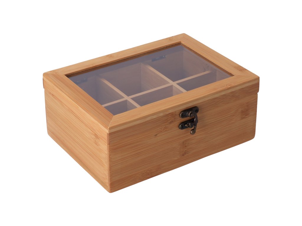 De bamboedoos voor thee met zes vakken is handig voor het opbergen van theezakjes. Dankzij het plastic deksel behoudt de thee lang zijn heerlijke geur.