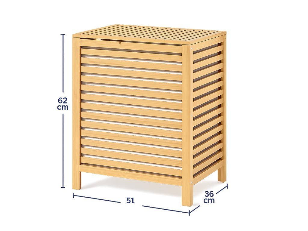 De bamboe wasmand met een inhoud van 62 liter biedt voldoende ruimte voor grotere hoeveelheden wasgoed. De robuuste constructie van hoogwaardig, natuurlijk bamboe garandeert stabiliteit en een lange levensduur. De bamboe-accessoires zijn bovendien gelakt, waardoor de wasmand ook geschikt is voor ruimtes met een hogere luchtvochtigheid.