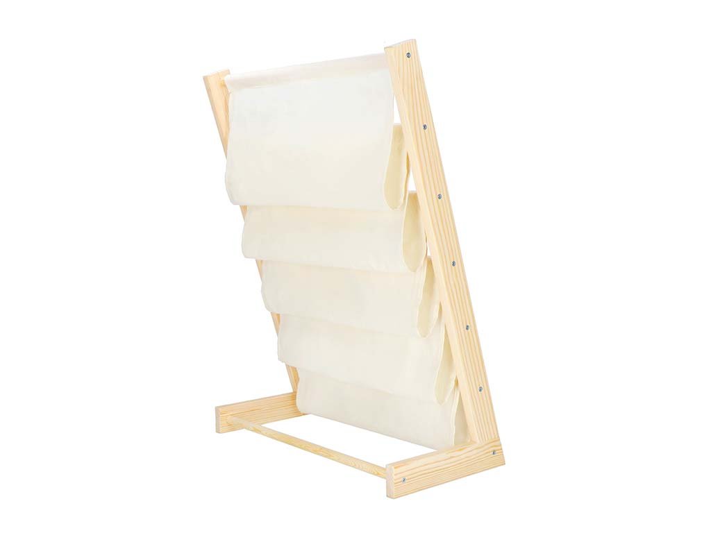 In de stoffen plank zullen uw boeken als in katoen zijn. In de zes stoffen planken kunnen boeken en andere platte voorwerpen van verschillende afmetingen worden opgeslagen, zodat kinderen ze altijd in het zicht hebben.