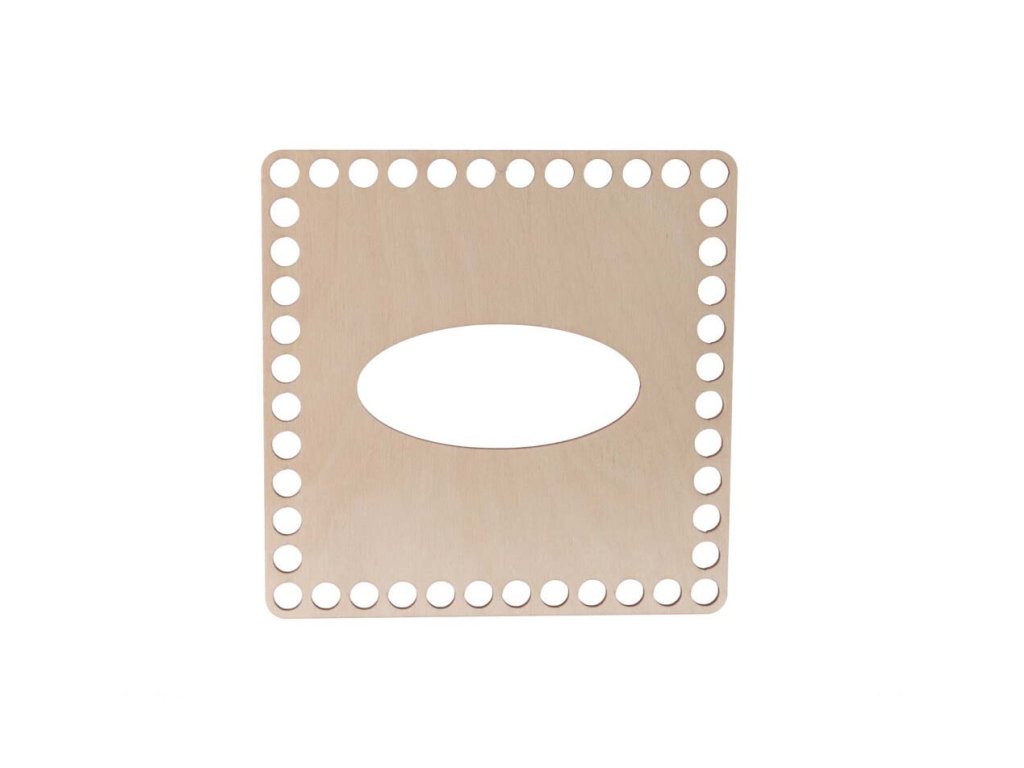 Vierkante deksel voor zakdoeken dient als basis voor het maken van gehaakte decoraties van touw en garen. Het is gemaakt van berken multiplex van 3 mm dik met gaten van 9 mm in diameter en in het aanbod vindt u verschillende maten.