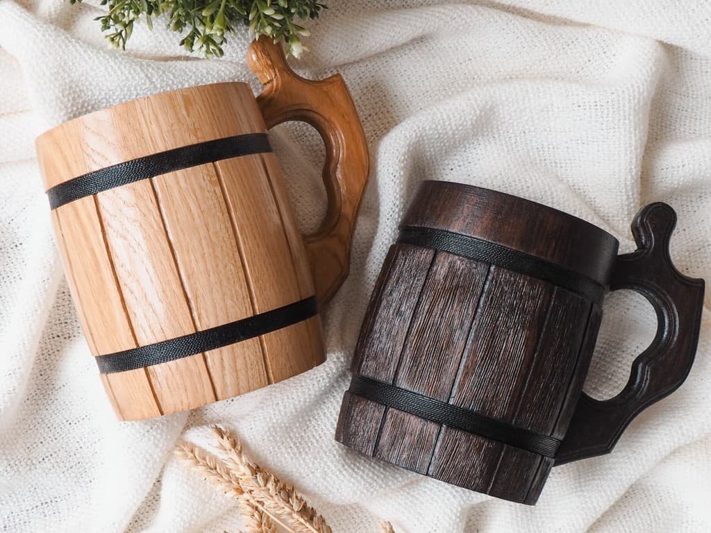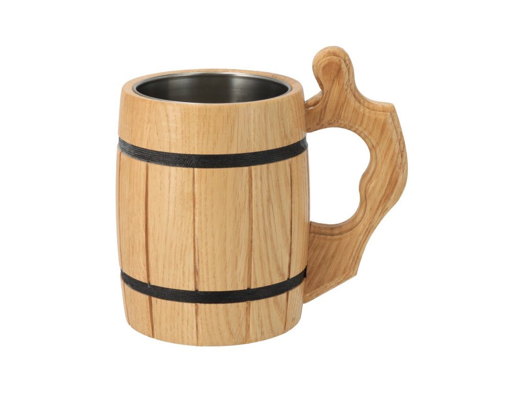 Een eikenhouten bierpul met een roestvrijstalen inzet zorgt ervoor dat uw bier op een aangename temperatuur blijft, niet opwarmt en u uw favoriete drankje met stijl kunt genieten.