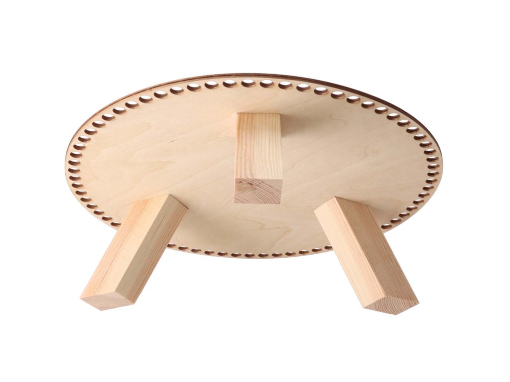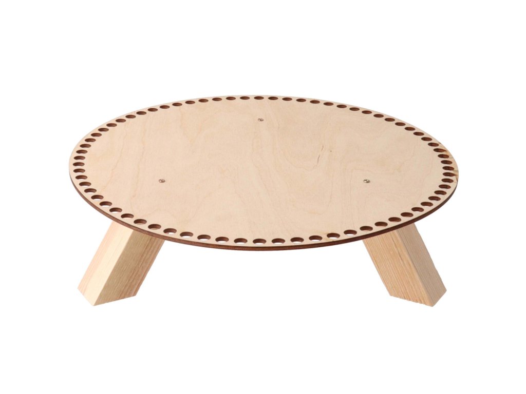 Ronde houten standaard van berkenmultiplex met een dikte van 3 mm en openingen met een diameter van 9 mm bieden wij in verschillende maten. Het is geschikt voor het maken van een gehaakte pottenhouder van jute garen.
