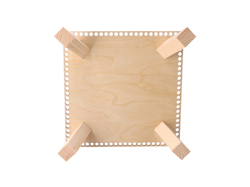 Houten standaard van berkenmultiplex van 3 mm dik met gaten van 9 mm diameter bieden we in verschillende maten. Het is geschikt voor het maken van een gehaakte pottenhouder van jute garen.