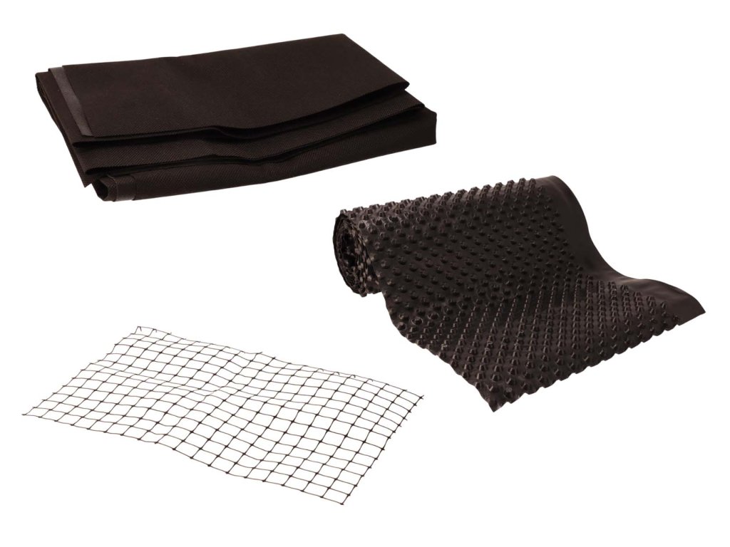Geotextiel, knaagdiernet en noppenfolie