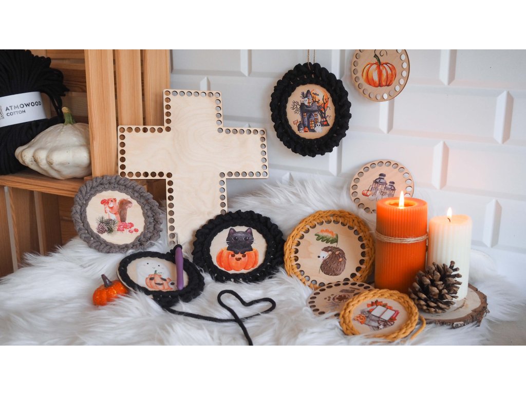 Houten bodems voor manden bieden eindeloze mogelijkheden voor gebruik. De kruisvorm kan dienen als basis voor het maken van een onconventionele Halloween-mand of je kunt er een herfstinterieurdecoratie van maken.