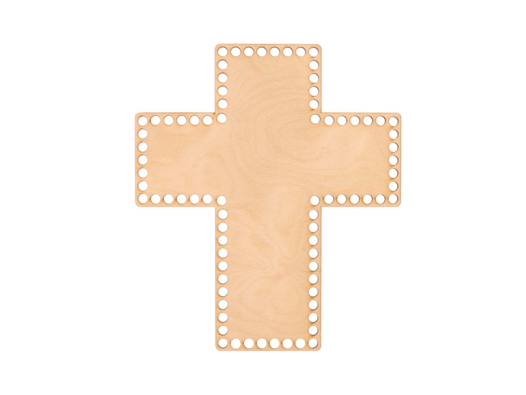 Houten bodem voor de mand in kruisvorm is gemaakt van berkenmultiplex van 3 mm dik. Het is geschikt voor het maken van interieurdecoraties van touw en koord.