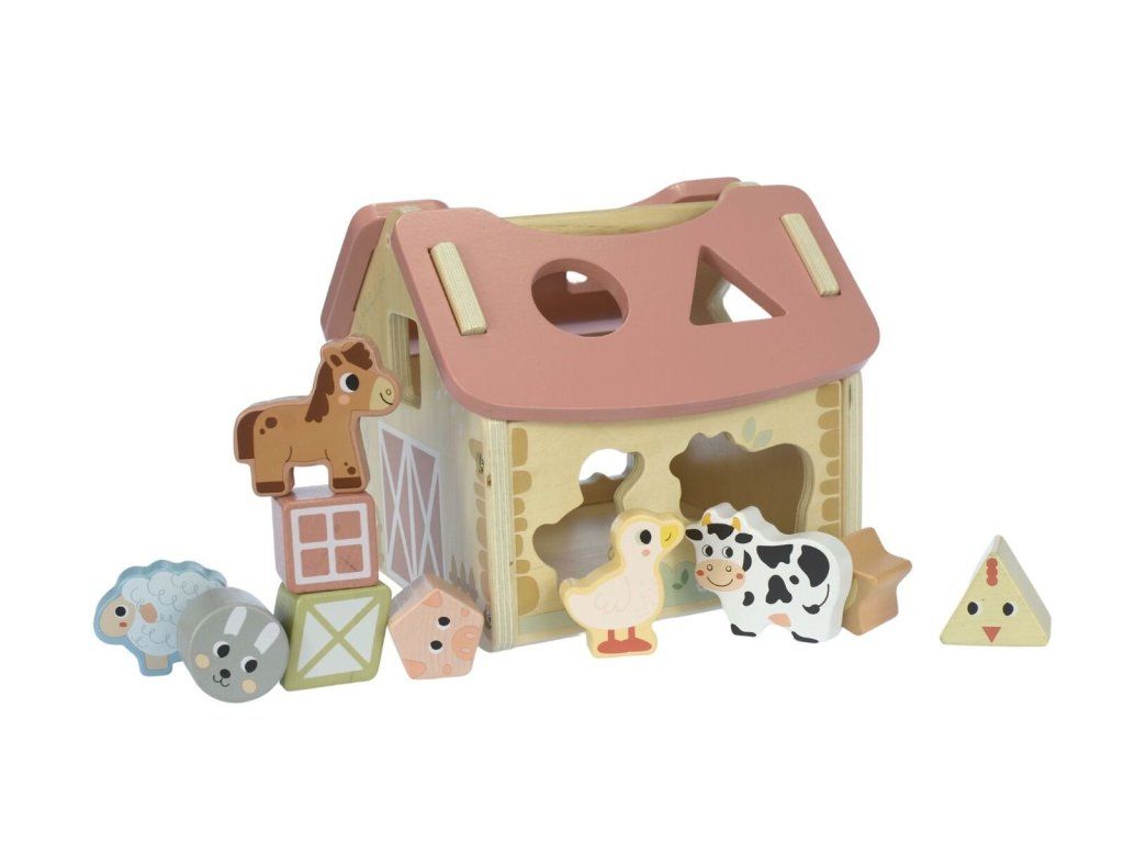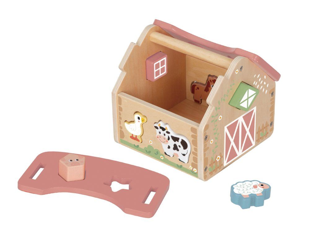 Ontdek de charme van het plattelandsleven met deze houten boerderij met dieren, die kleine ontdekkers urenlang speelplezier biedt. Dit prachtig vormgegeven boerderijspeelgoed laat kinderen spelenderwijs leren: ze plaatsen dieren en vormen in de juiste openingen en ontdekken zo de wereld om hen heen.