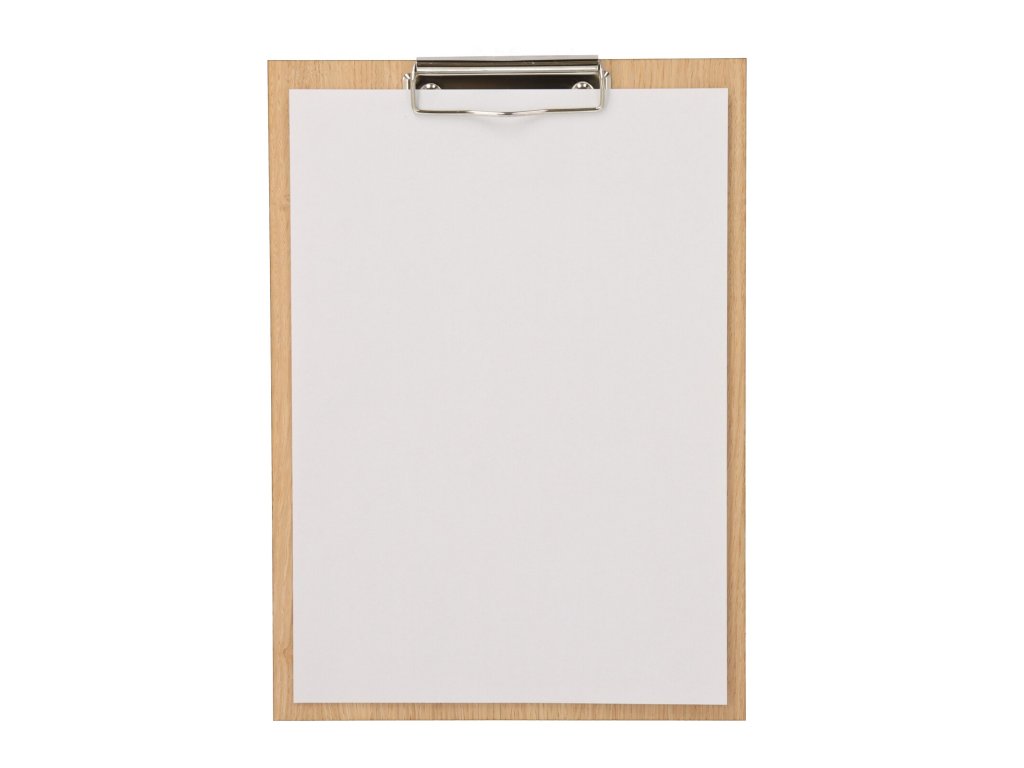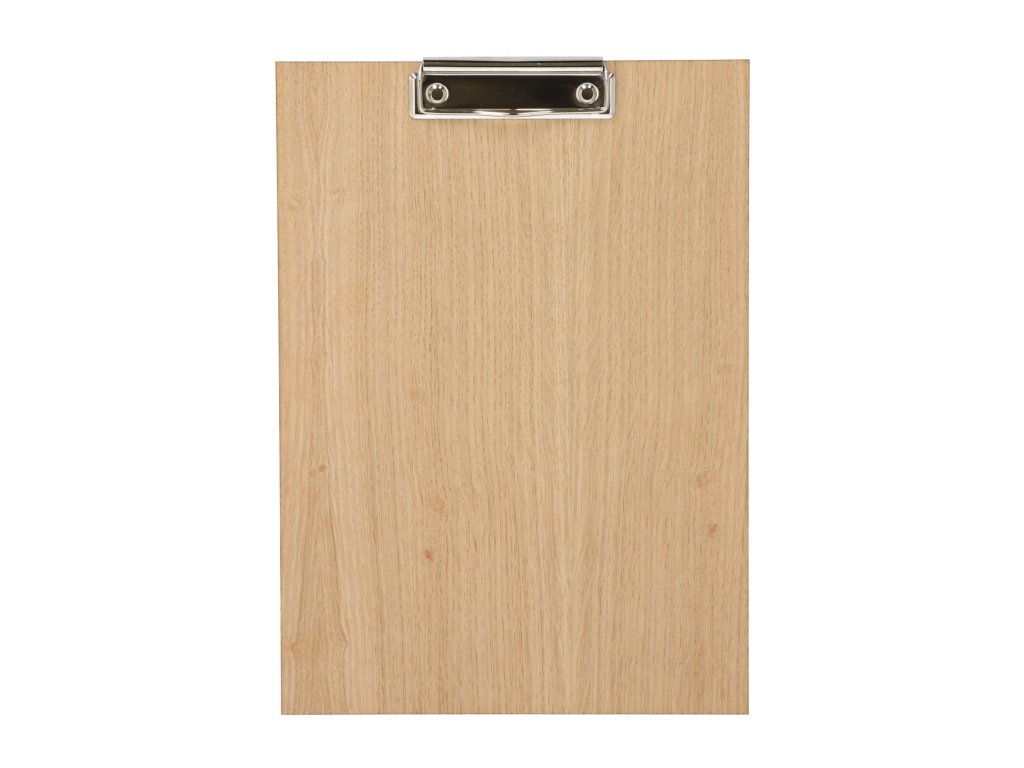 Het bord is gemaakt van eiken multiplex van 4 mm dik en is uitgerust met een sterke clip. Geschikt voor papierformaten tot A4.