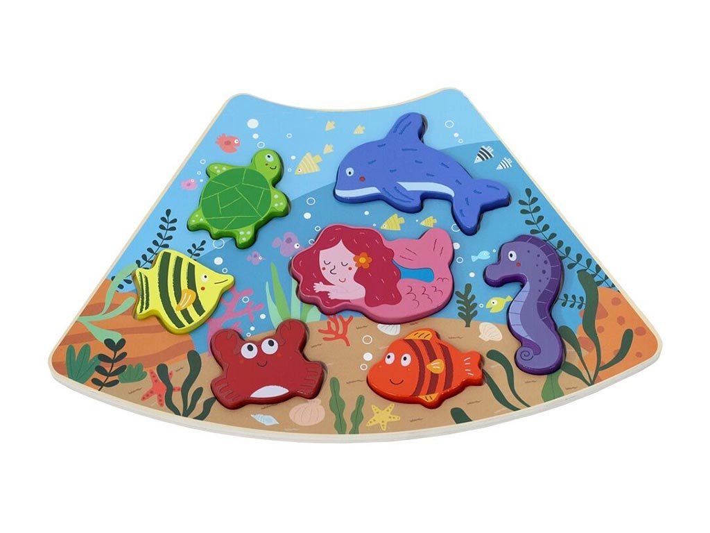 Elke puzzel bevat kleurrijke, gevormde stukjes die in de uitsparingen kunnen worden geplaatst of los gebruikt kunnen worden voor vrij spel. Kinderen kunnen zo dieren, vervoermiddelen en onderwaterfiguren herkennen, hun eigen scènes creëren en spelen volgens hun fantasie.