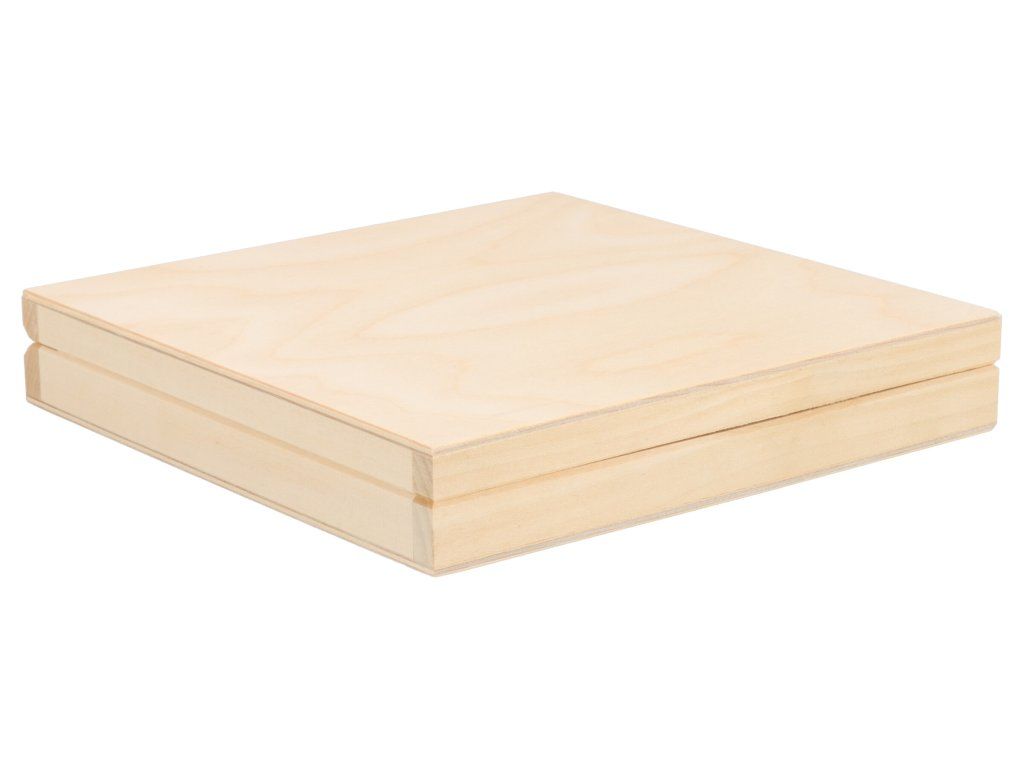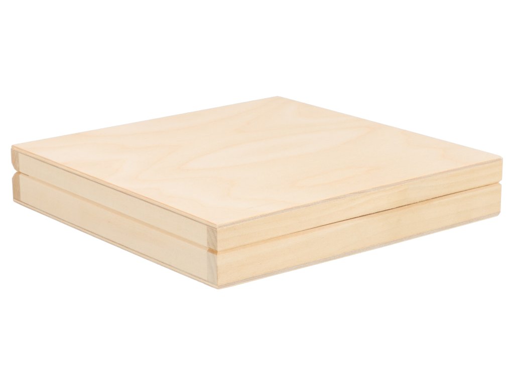 Interne afmetingen van het doosje: 18 x 18 x 2 cm