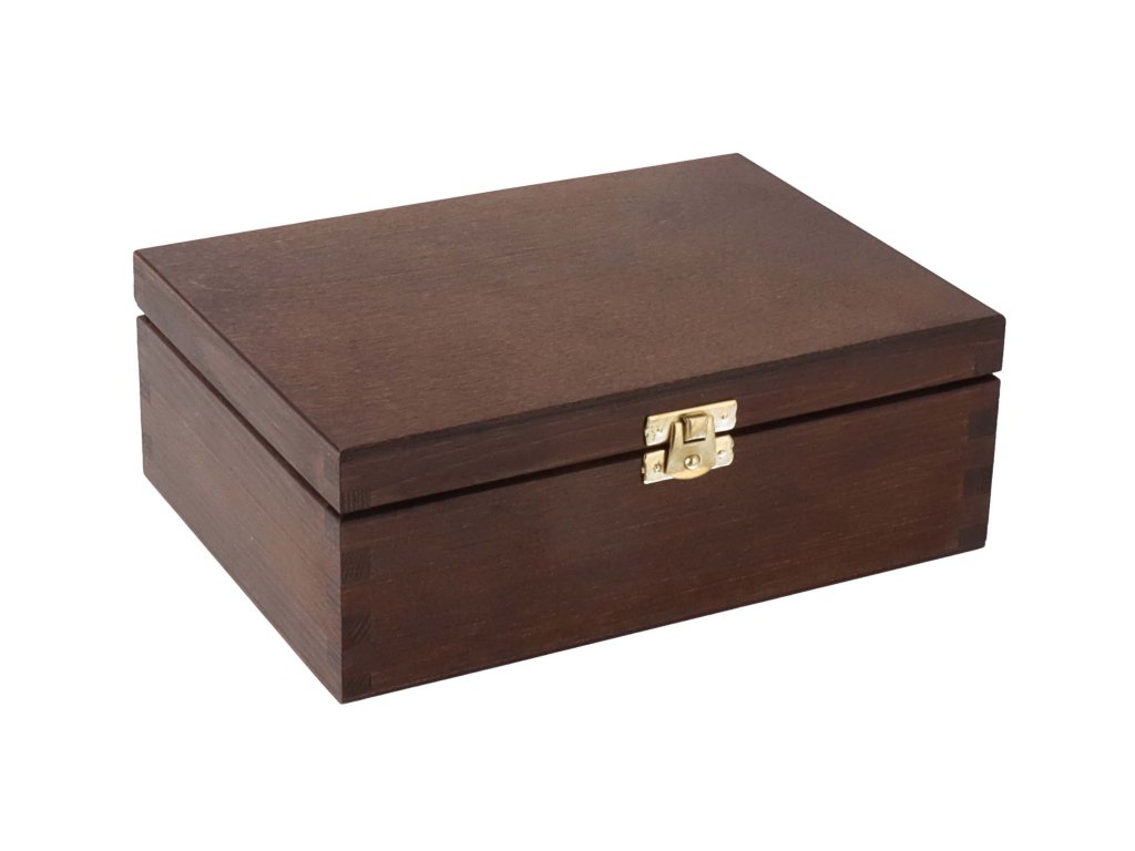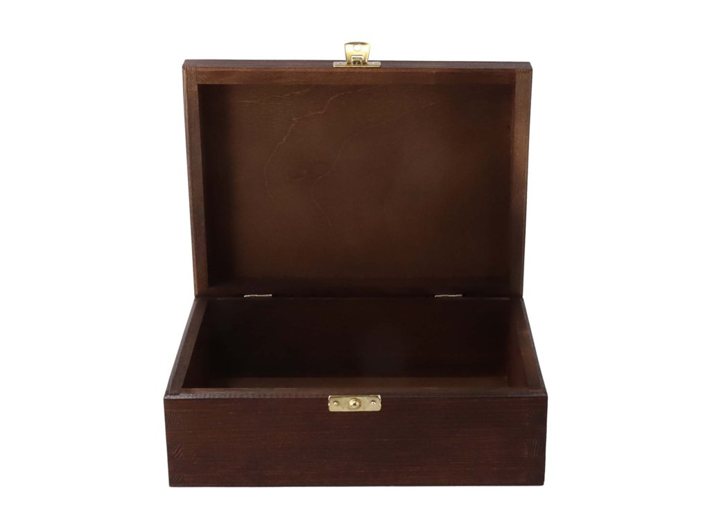 De houten doos van dennenhout is perfect voor het verbergen van verschillende kleine dingen. Het is niet alleen praktisch, maar dankzij de donkerbruine uitvoering zal het ook perfect passen in elk interieur.