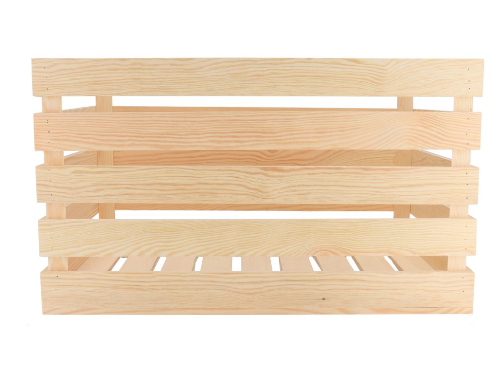 Voor een langere levensduur en verhoogd draagvermogen zijn de latten met lijm bevestigd en bovendien verstevigd met spijkers die in het hout zijn verzonken, zodat ze de esthetische indruk niet verstoren. Het hout is niet behandeld, dus het is aan jou om te beslissen of je voor de natuurlijke optie gaat of de kist naar jouw wens aanpast.