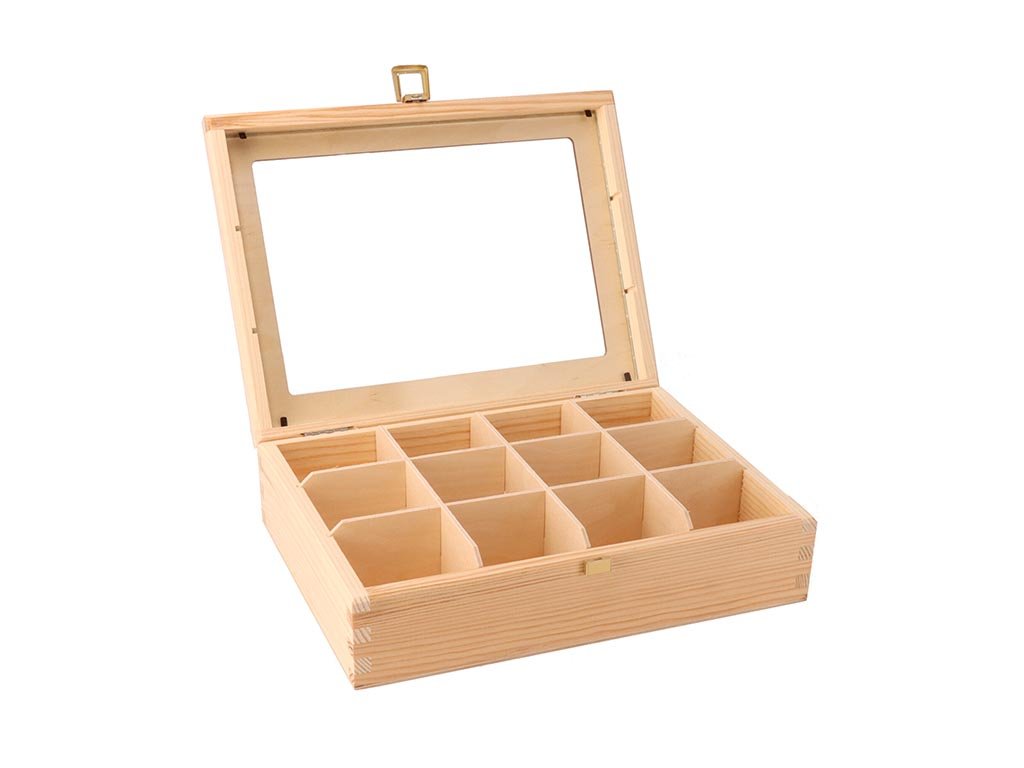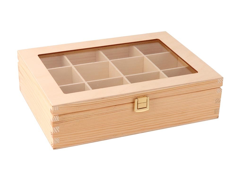 Mooie houten doos met een veilige sluiting, waarin je al je favoriete thee kunt opbergen, maar ook sieraden en kralen. Dankzij het doorzichtige glazen deksel heb je altijd overzicht over de inhoud.