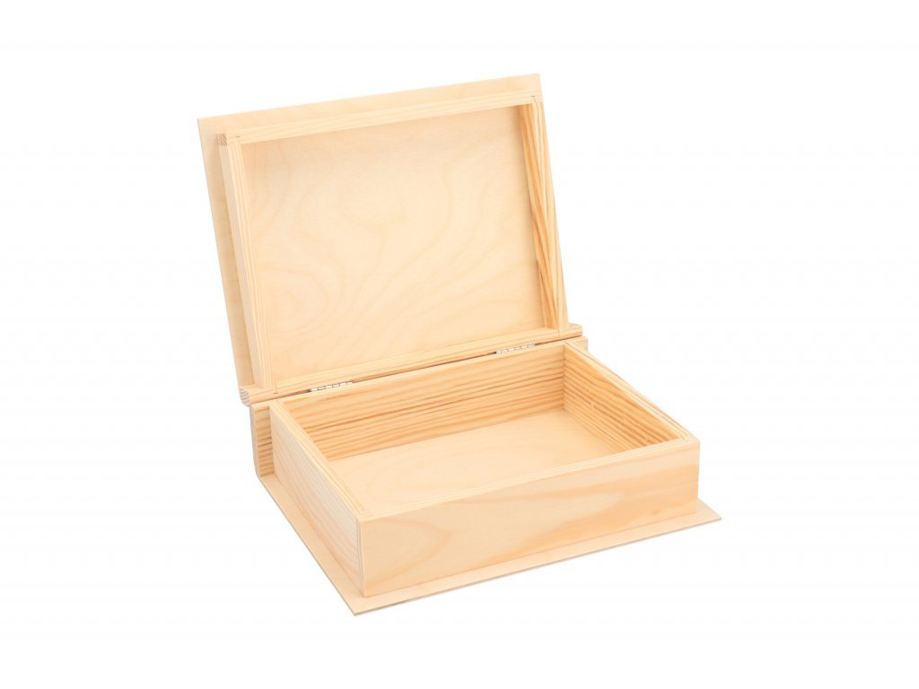 Houten kist in de vorm van een boek van vers dennenhout helpt om een cadeau voor een verjaardag origineel in te pakken. Met behulp van lasergravure maken we van deze kist een uniek stuk precies volgens uw wensen.