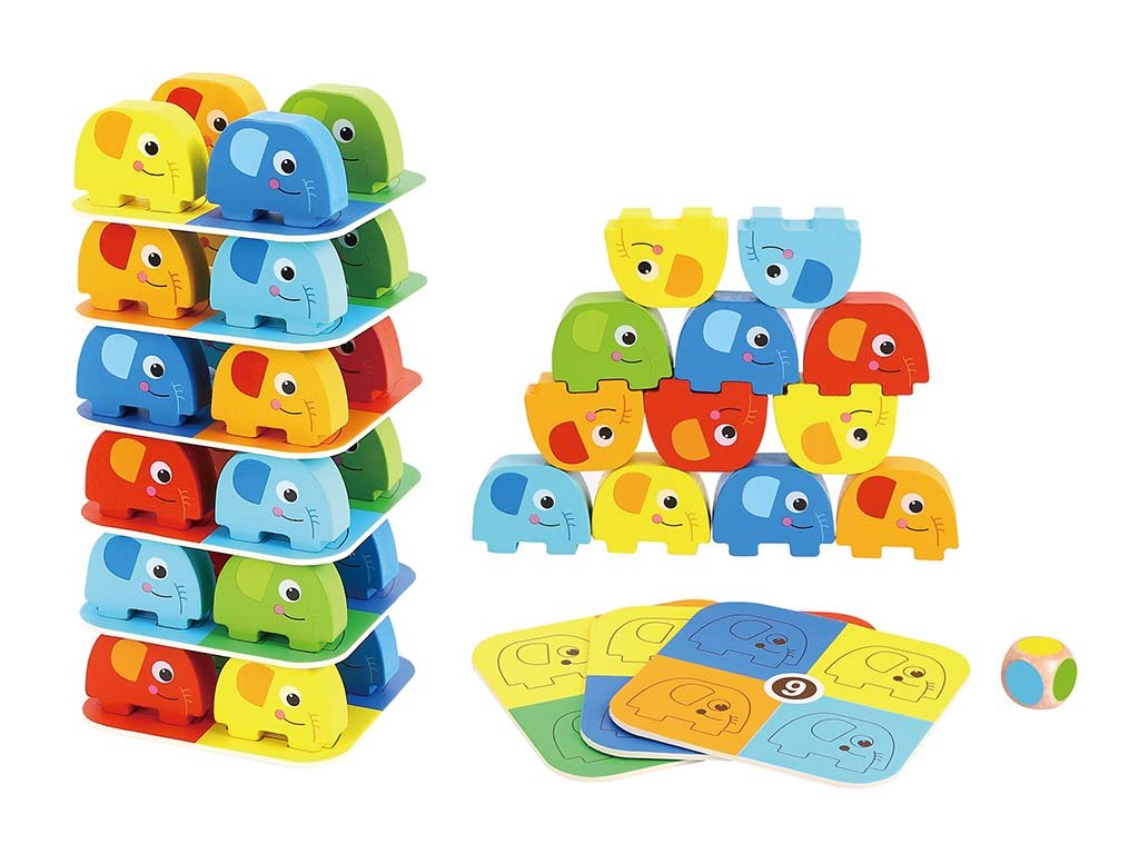 De dierenbalanstoren is leuk en leerzaam speelgoed dat kinderen geduld, concentratie en fijne motoriek bijbrengt. De taak is om de kleurrijke houten schijven tot een toren te stapelen en de vrolijke olifanten er geleidelijk bovenop te plaatsen zonder dat de hele constructie omvalt. De dierenvrienden trainen niet alleen de behendigheid van kinderen, maar stimuleren ook hun fantasie bij het bedenken van eigen verhalen.