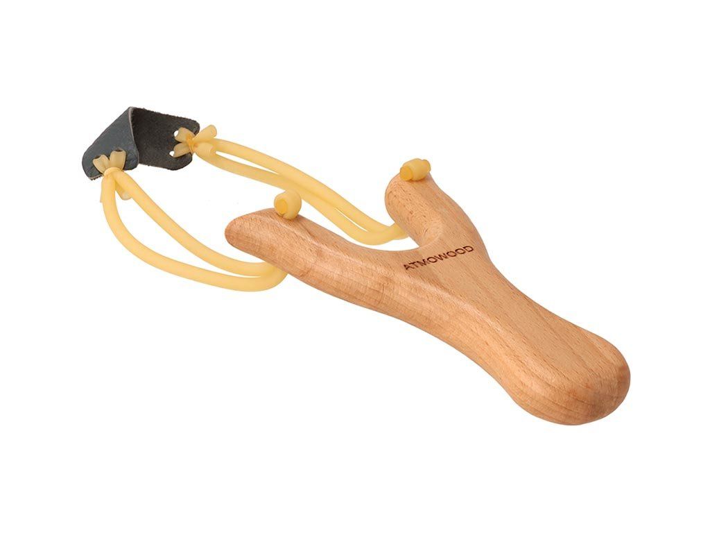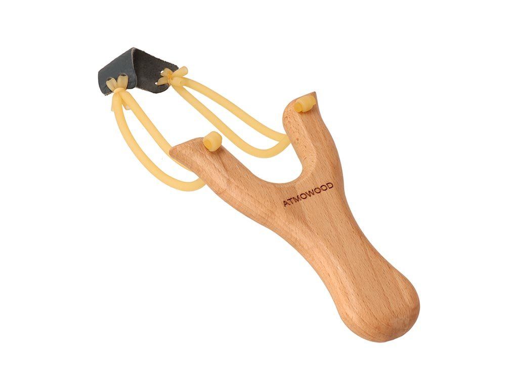 Dankzij het natuurlijke materiaal heeft de katapult een authentieke uitstraling en is deze bovendien milieuvriendelijk. Elk exemplaar is uniek, met een gegraveerd ATMOWOOD-logo en een eigen houtpatroon.