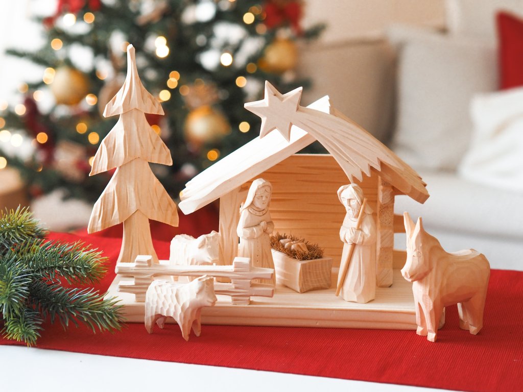Een handgemaakt kerststal van dennen- en lindenhout zal een originele decoratie zijn tijdens de kerstperiode. Elke figuur is met liefde gemaakt en klaar om de magie van Kerst te versterken.