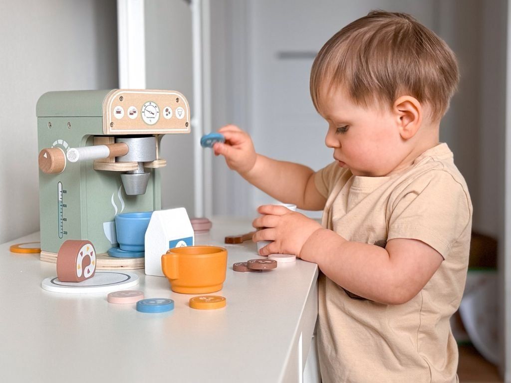 Verander de kamer van je kind in een gezellig café! Het houten koffiezetapparaat met realistische accessoires zal kleine barista’s die graag volwassenen nadoen, volop plezier bezorgen. Dankzij het doordachte ontwerp en de hoogwaardige afwerking beleven kinderen veel creatief plezier en ontwikkelen ze tegelijkertijd hun verbeelding, fijne motoriek en communicatieve vaardigheden.