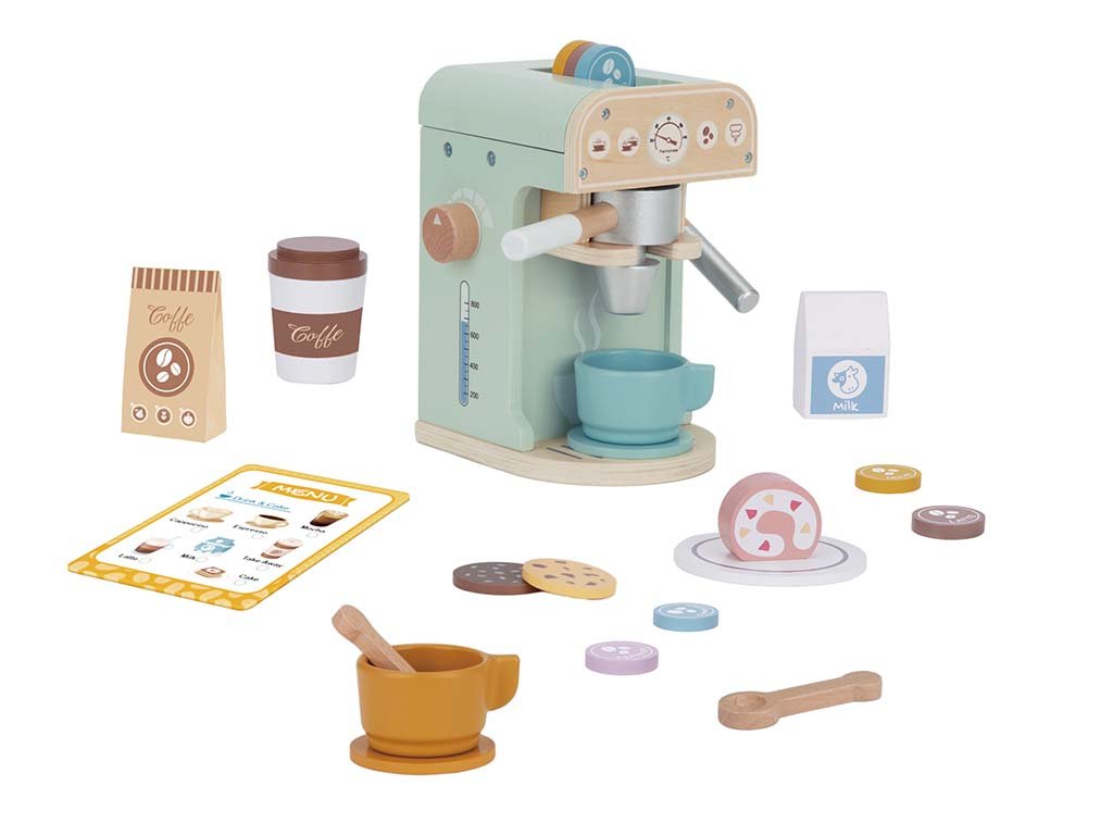 Een koffiezetapparaat met accessoires is een perfect cadeau voor feestdagen of een verjaardag. Kinderen kunnen er heerlijk mee spelen en het is bovendien een decoratief element in de kamer.