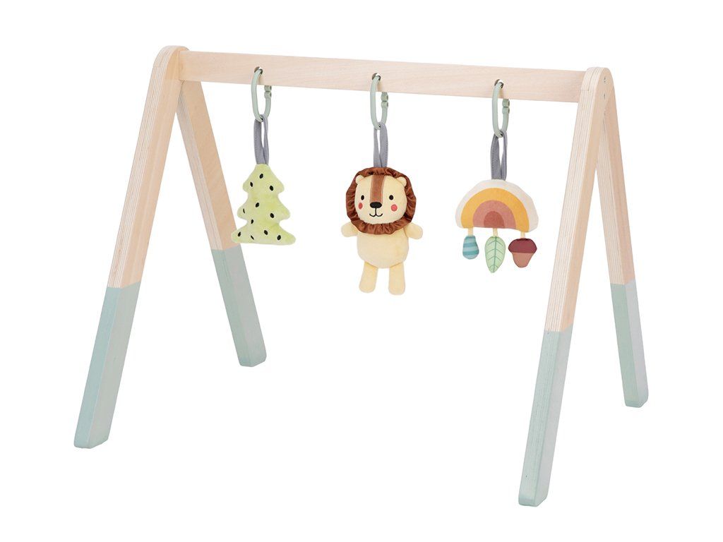 Een stijlvolle houten box met hangende speeltjes van textiel is een ideaal hulpmiddel voor de ontwikkeling van de motoriek en sensorische waarneming van je baby. Kleurrijke en zachte speeltjes in de vorm van dieren en vormen nodigen uit tot aanraken, grijpen en ontdekken, en ondersteunen zo de oog-handcoördinatie en de eerste bewegingen van je baby.