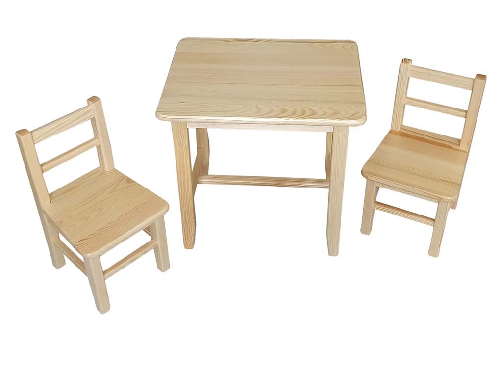 De set van tafeltje en stoelen is gemaakt van hoogwaardig massief grenenhout, dat aangenaam zacht is, maar tegelijkertijd voldoende duurzaam.
