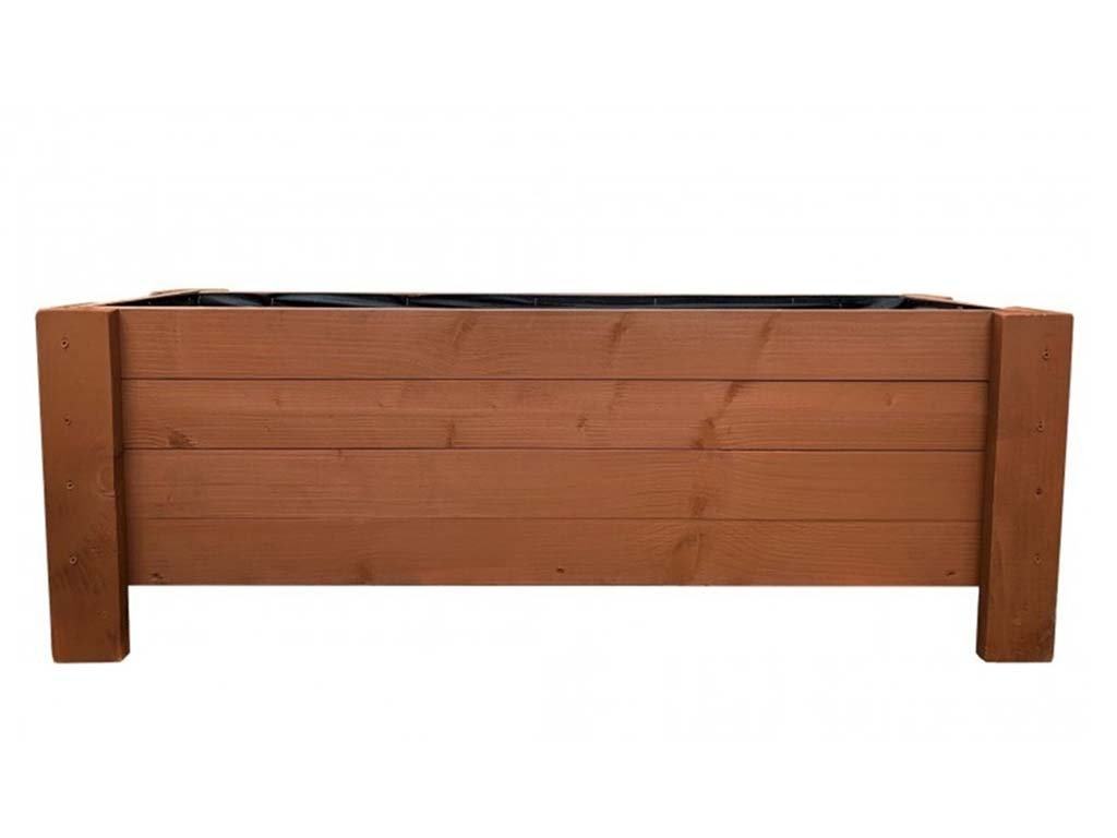 Het hout is gebeitst in een teak kleur. De plantenbak krijgt hierdoor een ongewone uitstraling en wordt een onmiskenbare blikvanger in uw tuin.