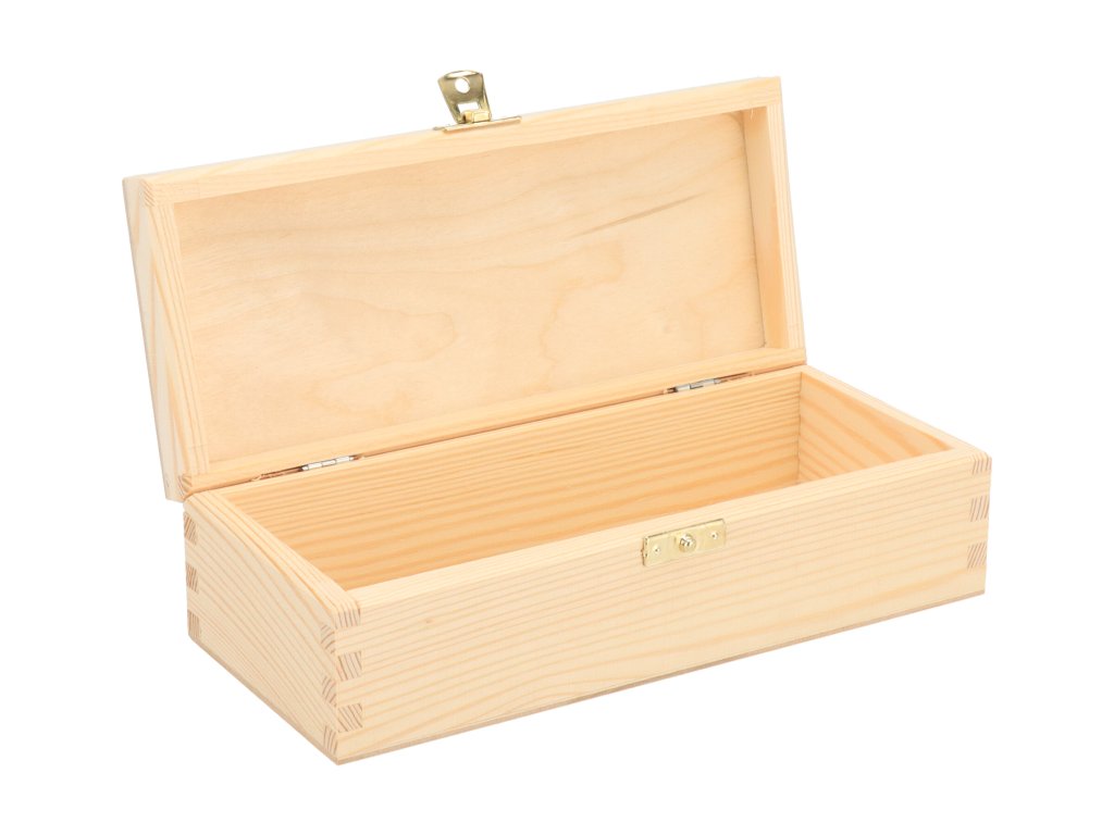 Een doos waarin u kleine schatten, sieraden, geheime briefjes kunt verstoppen, maar u kunt het ook gebruiken voor kleurpotloden, kinderspeelblokjes of memory. Gemaakt van dennenhout.