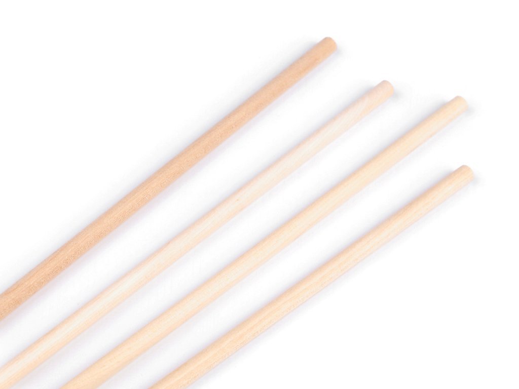 Houten stokken van puur en nauwkeurig bewerkt hout hebben rechte uiteinden. Ze voelen zeer aangenaam aan.