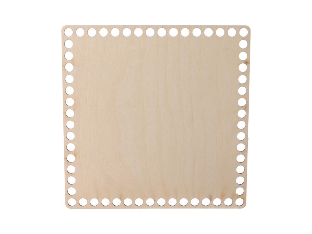 Vierkante houten bodem voor de mand van berkenmultiplex dient als basis voor gehaakte accessoires voor in huis. Aan de rand zijn er openingen met een diameter van 9 mm en in het aanbod hebben we verschillende maten.