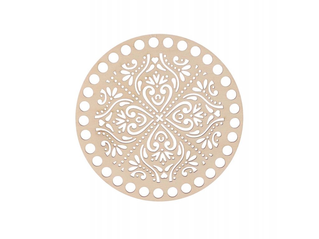 Houten deksel voor een mand met folkloristisch motief maken we van berken multiplex van 3 mm dik. Het is geschikt voor het maken van gehaakte manden en organizers van touwgaren. In het aanbod hebben we verschillende maten.