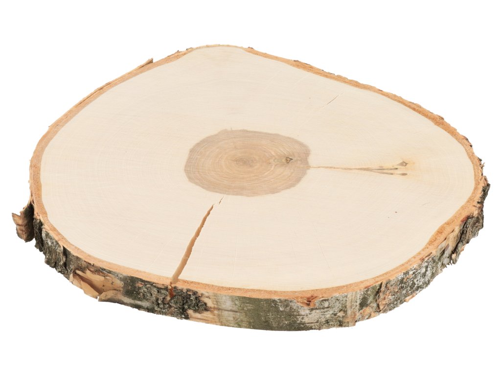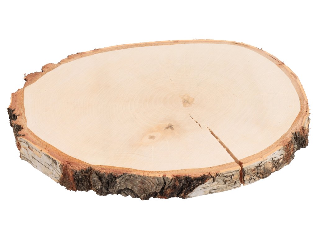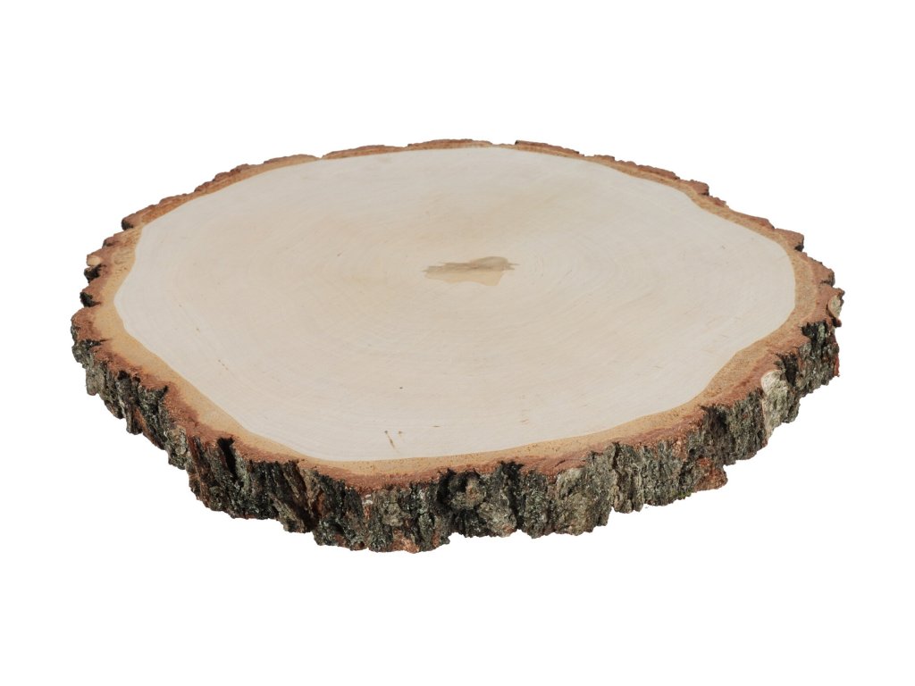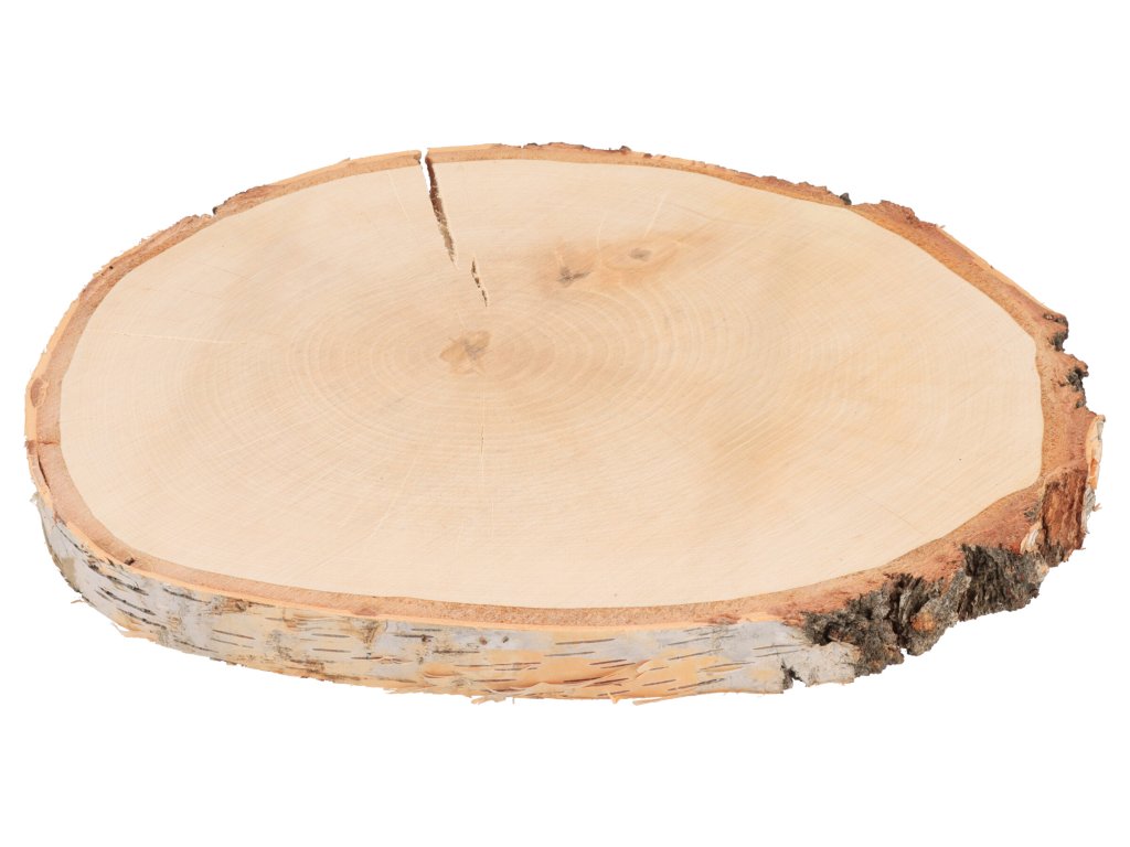 Een houten onderzetter van een berkenstam met natuurlijke schors is een prachtige decoratie die elke bruiloftstafel aanvult en in de kerstperiode kan dienen als basis voor een adventskrans.