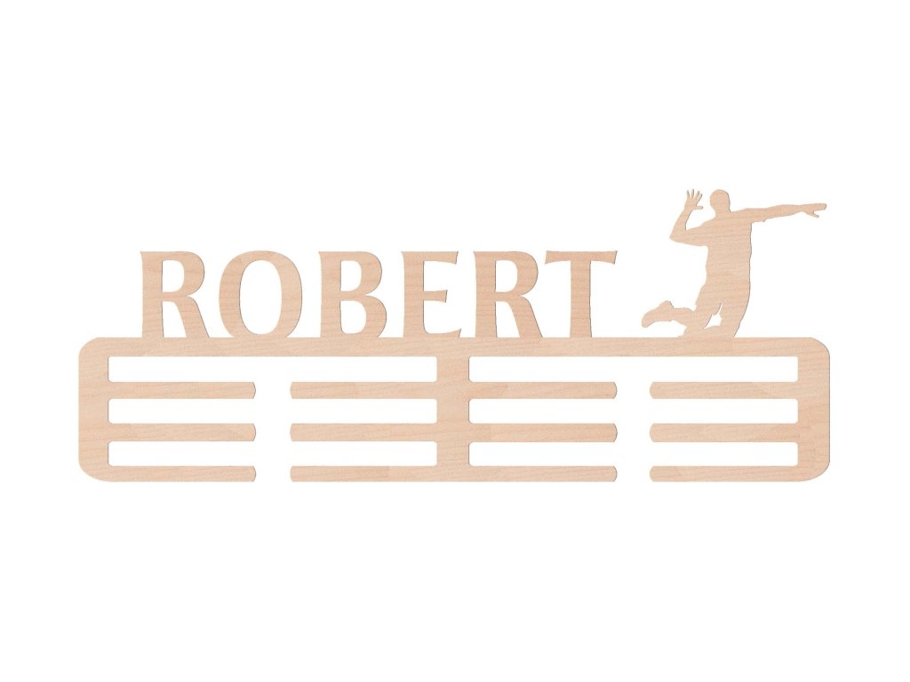 Voor volleybalspelers die hun tegenstanders overtreffen in hoogte en snelheid, is een houten houder de perfecte plek voor hun trofeeën. Het ontwerp past bij hun energieke tempo. De medaillehouder wordt voor u gemaakt door engelen uit onze beschermde werkplaats.