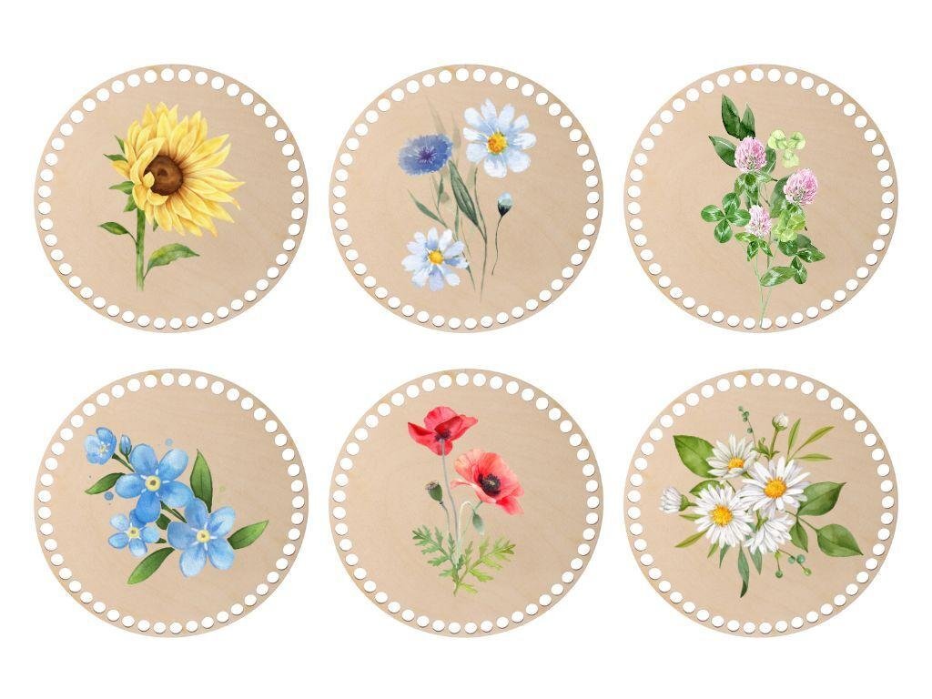 Set van 6 stuks ronde uitsneden van berken multiplex die geschikt zijn voor het maken van stijlvolle onderzetters, gehaakte manden en organizers. In de aanbieding hebben we meer maten en geschikte garens vindt u ook bij ons.
