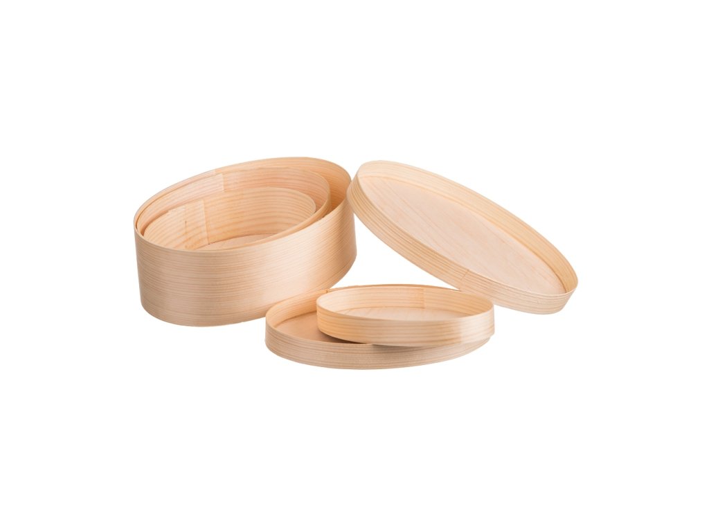 Ovale houten dozen van fineer 3 stuks