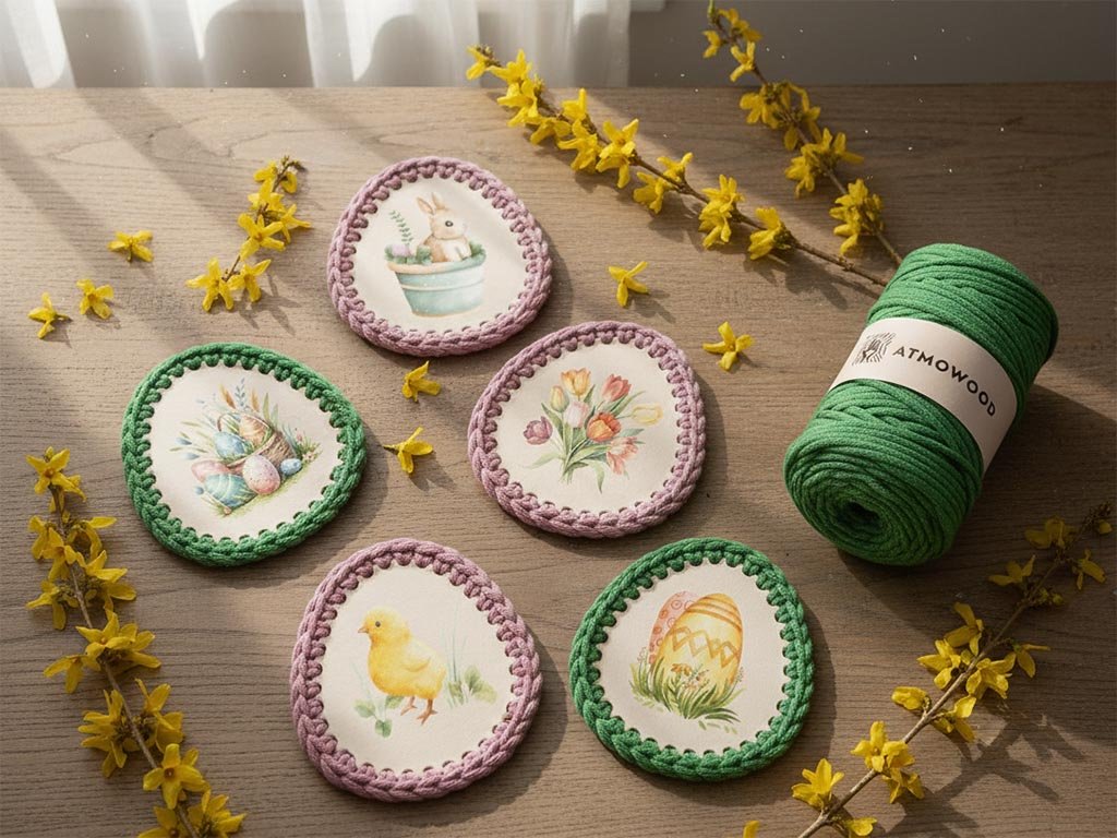 ★ Tip: Atmowood-garen in lentebloemkleuren is het meest geschikt voor het haken van paaseieren.