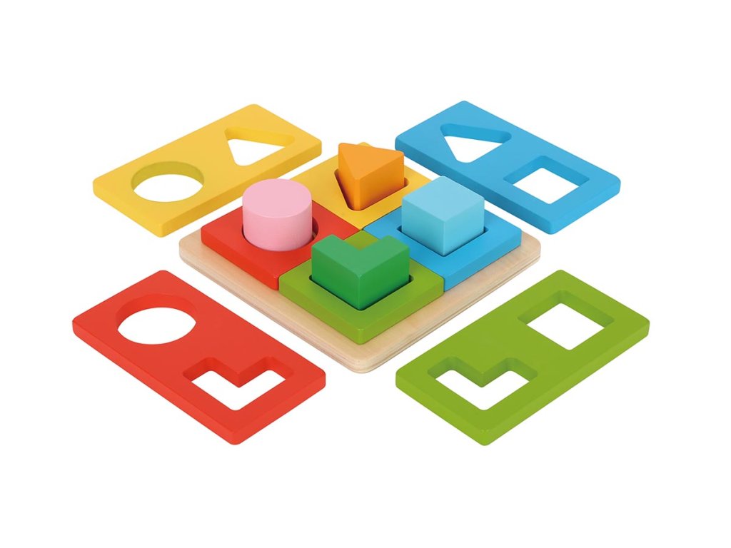 De kleurrijke houten puzzel is een geweldig hulpmiddel voor de eerste ontdekking van vormen en kleuren. Kinderen krijgen de opdracht om de juiste vorm bij het gat op de mat te leggen, waardoor logisch denken en concentratie worden geoefend. Naast eenvoudige geometrische vormen leren kinderen ook kleuren te onderscheiden en maten te vergelijken.