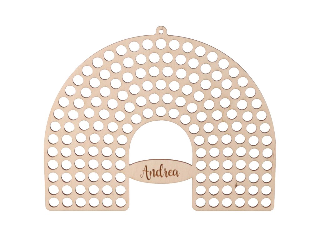 Houten regenboog op macramé met naam is niet alleen een originele decoratie, maar je kunt er ook een cadeau met persoonlijke waarde van maken. De diameter van de gaten is 9 mm en geef de gewenste naam aan ons door in het tekstveld.