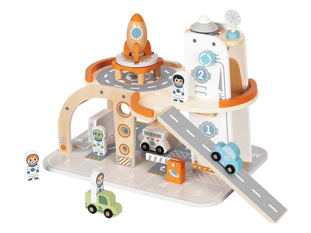 Ontdek een houten ruimtestation met raket, voertuigen en astronauten voor eindeloze avonturen. Het perfecte cadeau voor kleine ontdekkingsreizigers en een must-have in elke kinderkamer!