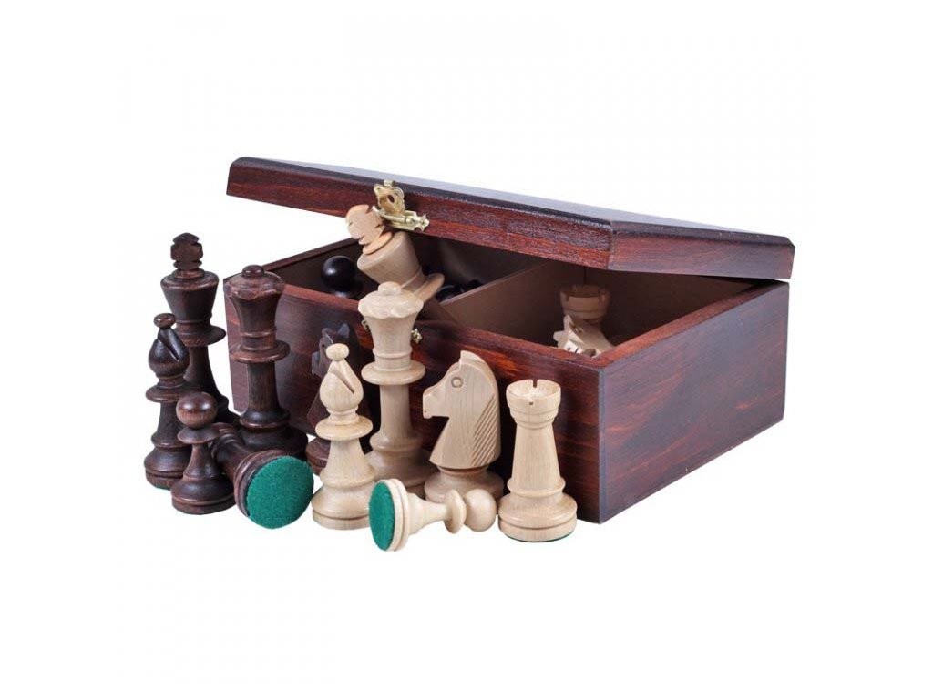 Mooie houten schaakfiguren verpakt in een praktische doos met een scheidingswand. Houtsnijwerk figuren zijn gemaakt van hornbeam hout.