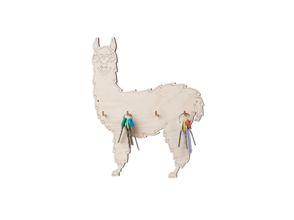 Stijlvolle houten sleutelhouder in de vorm van een lama zorgt ervoor dat je altijd je sleutels bij de hand hebt.