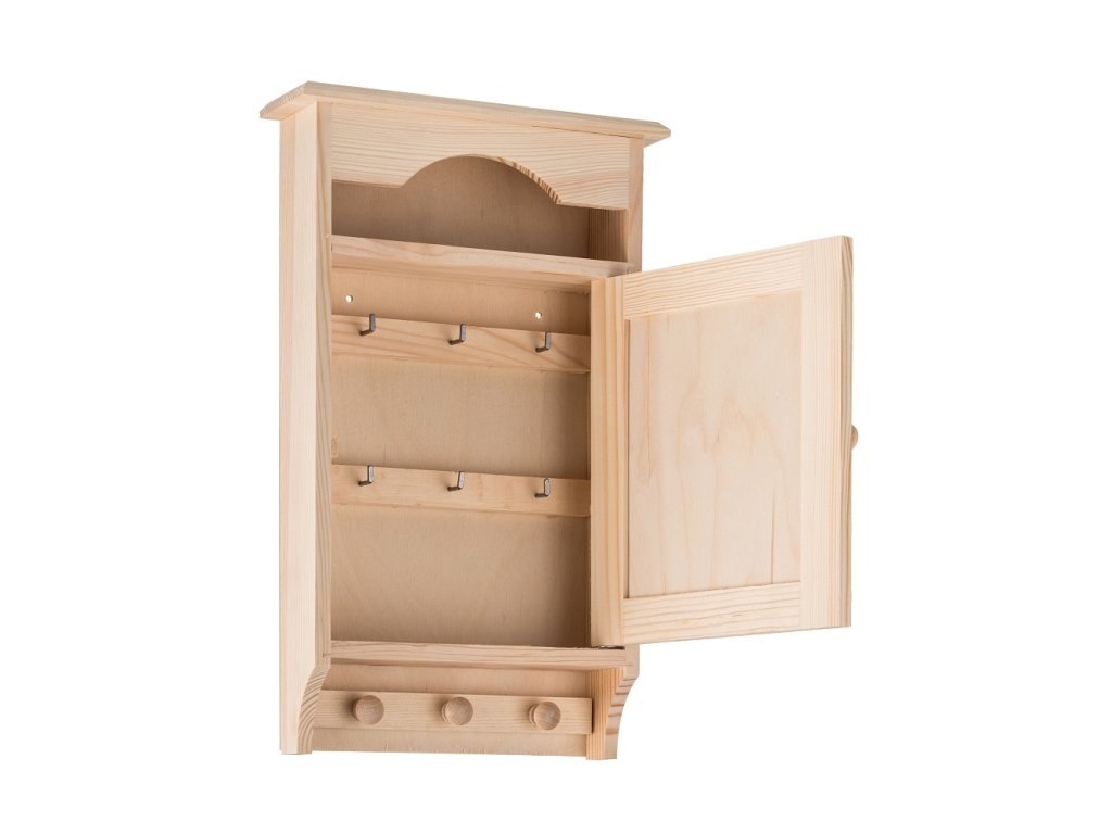 De doos is gemaakt van dennenhout en binnenin vind je metalen haken om sleutels aan op te hangen. Aan de onderkant van de box zitten houten lussen die je zeker zult waarderen.
