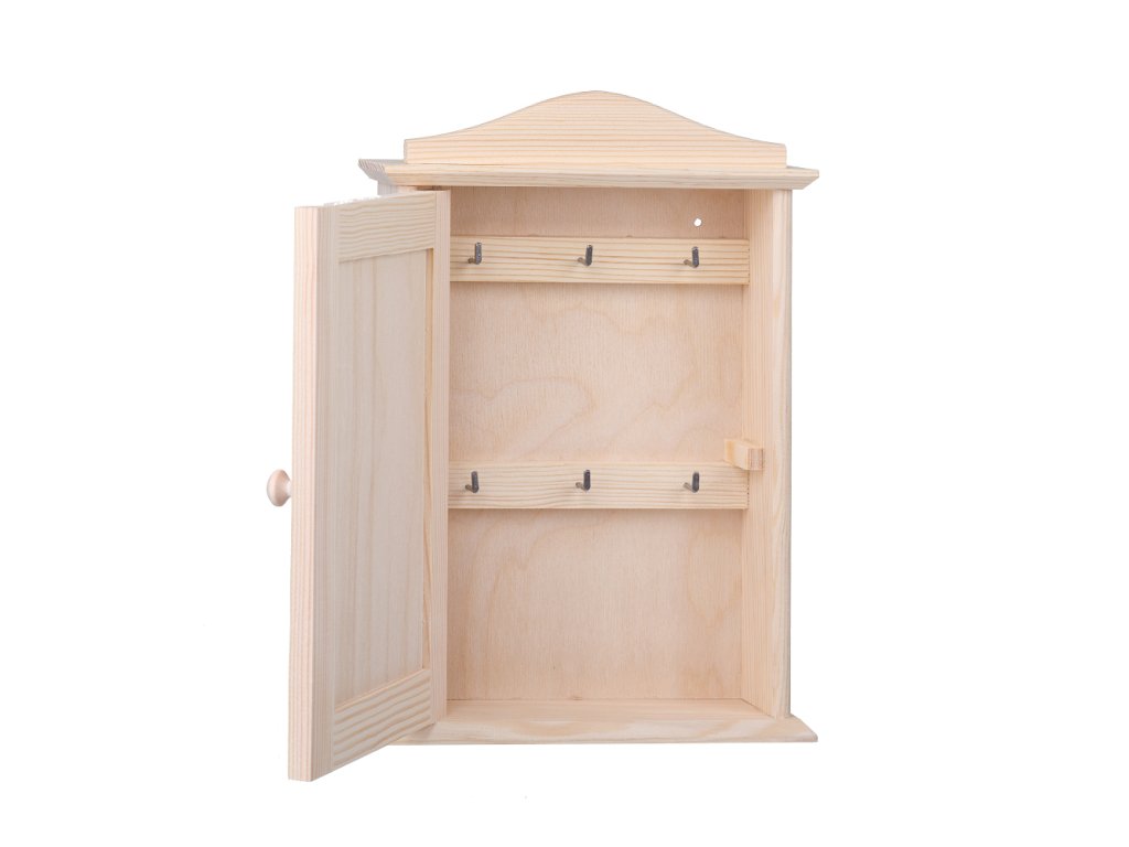 De doos is gemaakt van dennenhout en binnenin vind je haken om sleutels aan op te hangen. Aan de onderkant van de box zitten houten lussen die je zeker zult waarderen.