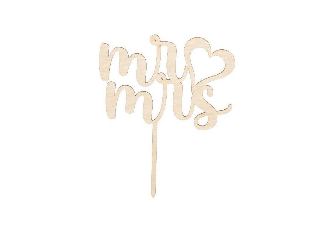 Houten prikdecoratie met de tekst Mr ♡ Mrs. Het product is geschikt voor versiering of decoratie.