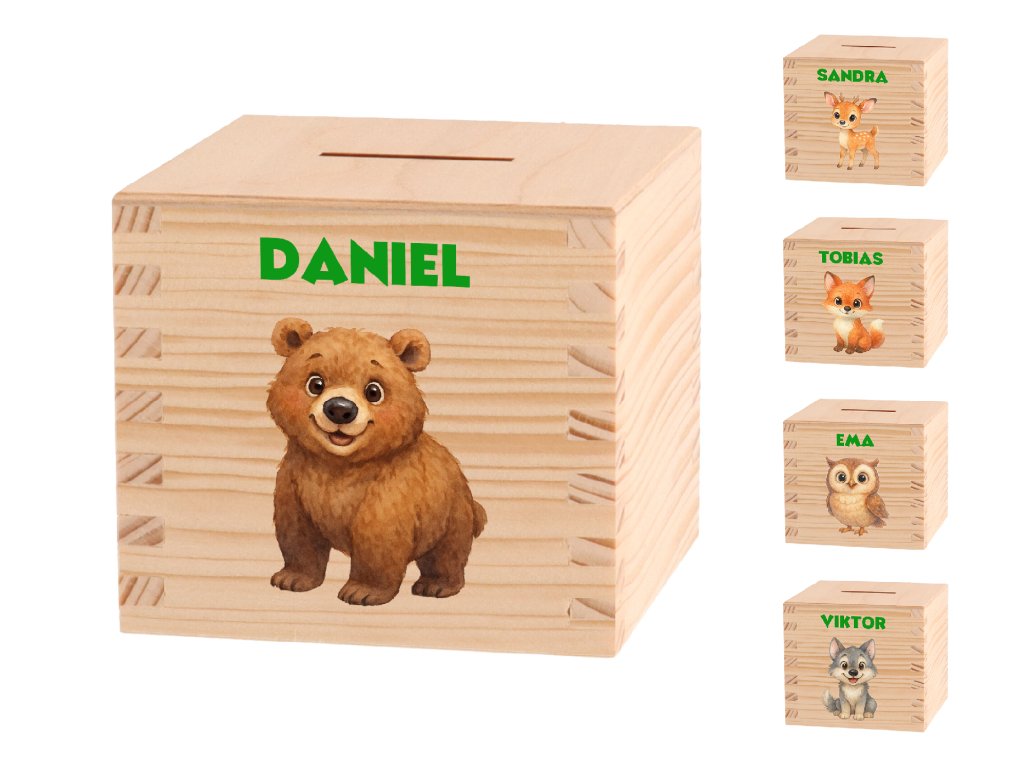 Een houten spaarpot met naam is een geweldig cadeau voor een verjaardag, Kerstmis of het eerste rapport op school. Leer kinderen op een speelse manier de basisbeginselen van financiële geletterdheid!